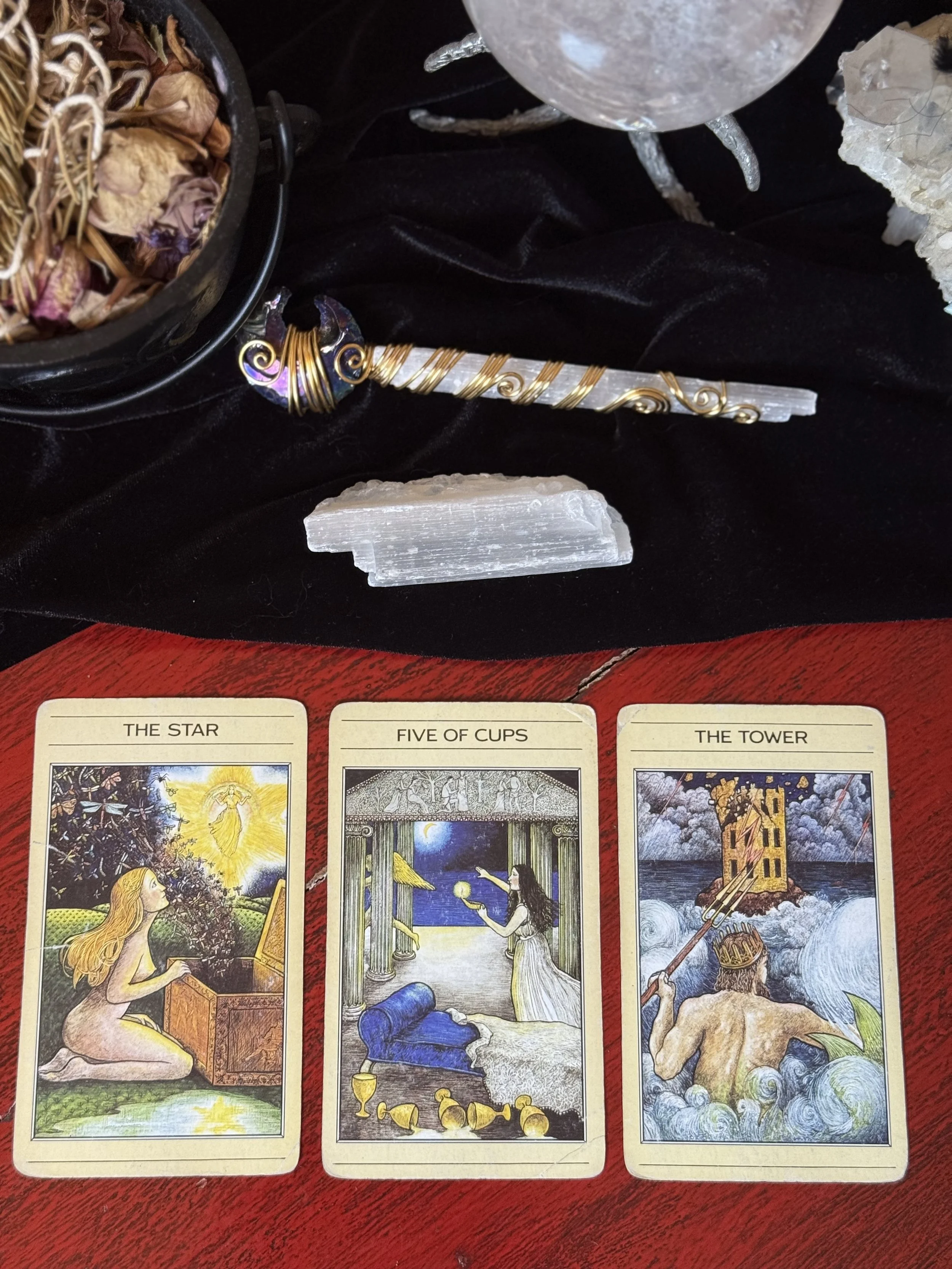 The Tower- Disruption. Collapse. Breakdown- The Tower brings massive disruption your way. Something unexpected occurs and it’s usually a little messy. The changes brought by The Tower are usually made more challenging when we resist them. If things implode this week, look for the lessons and messages involved. The Universe may be trying to help you clean house.