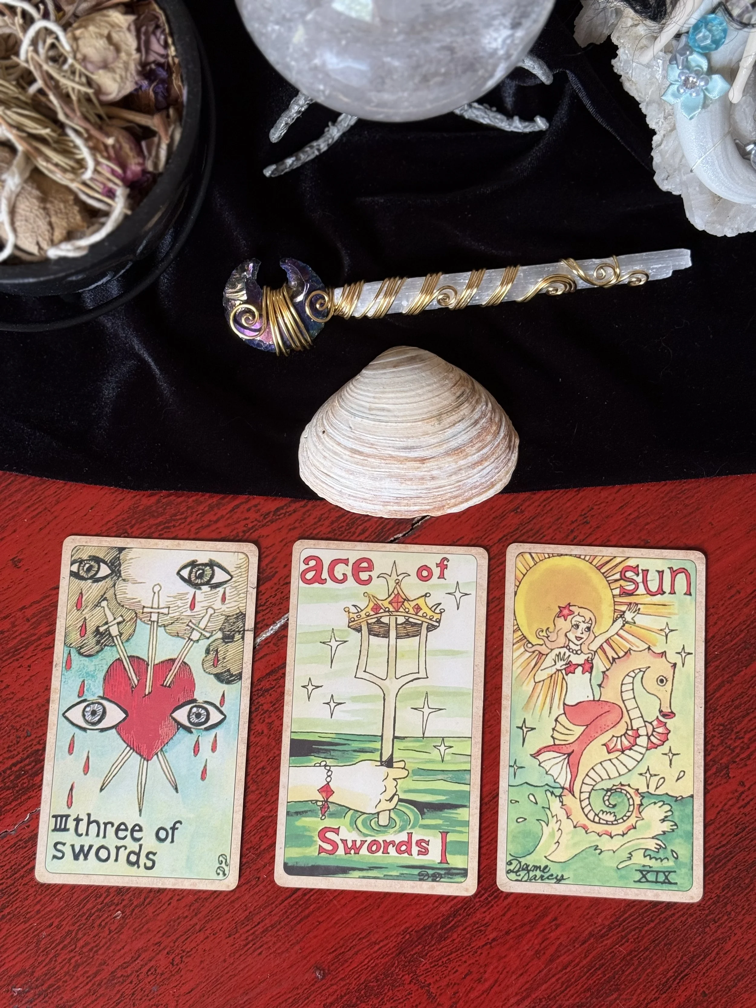 The Moon- Confusion. Fluctuation. Cycles- The Moon brings us face to face with the subconscious. What is happening beneath the surface for you at this time? Things in your life appear to be in flux. One cycle is ending and another is beginning and the in-between of that can feel murky and confusing. The message for this week is to not let your fears blow things out of proportion. Look for the hidden messages; and when in doubt, trust your intuition.