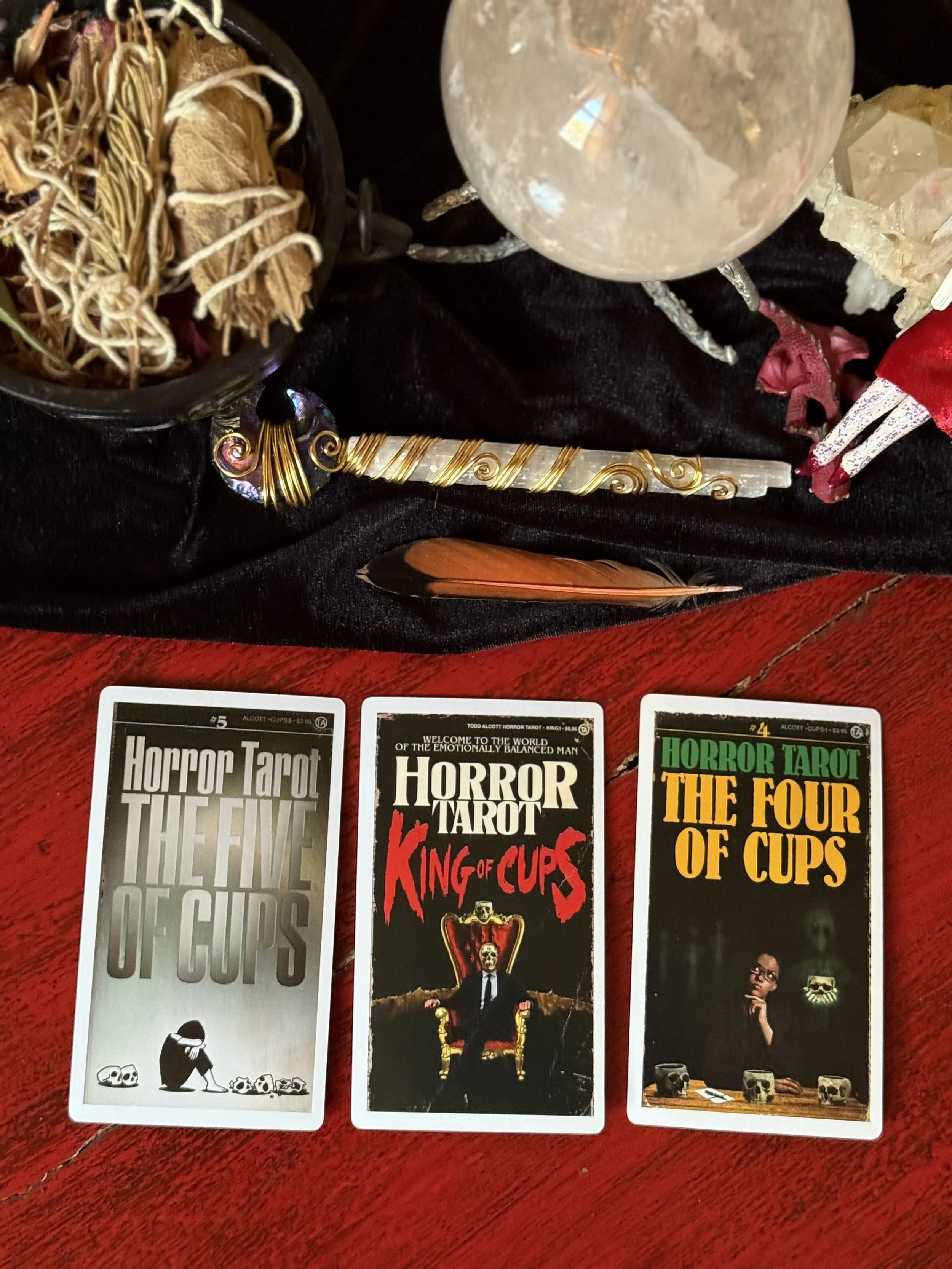 Five of Cups- Disappointment. Hurt. Betrayal- The Five of Cups indicates loss. Are you clinging to old hurts, betrayals, or disappointments? It’s time to let it go. What’s done is done, and it’s time to release what no longer serves you. Yes, the disappointment is real and it is also valid. Grief and loss are a part of life, but it's time to stop holding on to things that have hurt you.