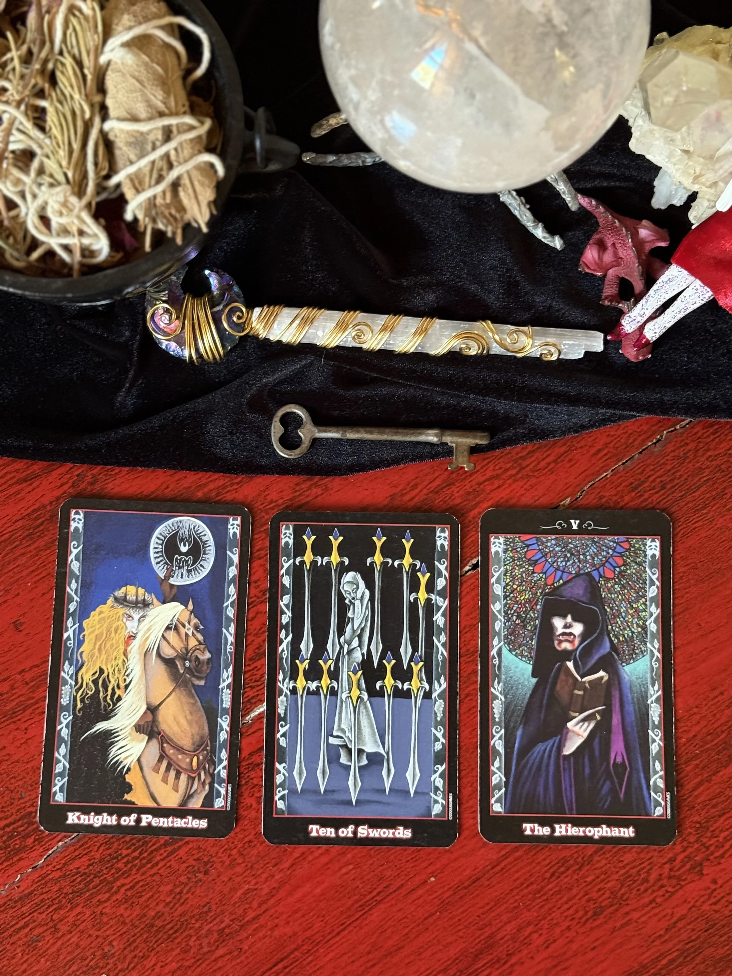 Ten of Swords- Endings. Release. Finale - The Ten of Swords brings an ending and often one that feels difficult. This Ten says that something has reached its end point, and it's time to acknowledge that and let whatever it is go. Often, this Ten brings tough feelings along with it. What in your life needs to be released? What have you outgrown? It's time to acknowledge the truth of the matter and end whatever it keeping you trapped so you have space for fresh growth.