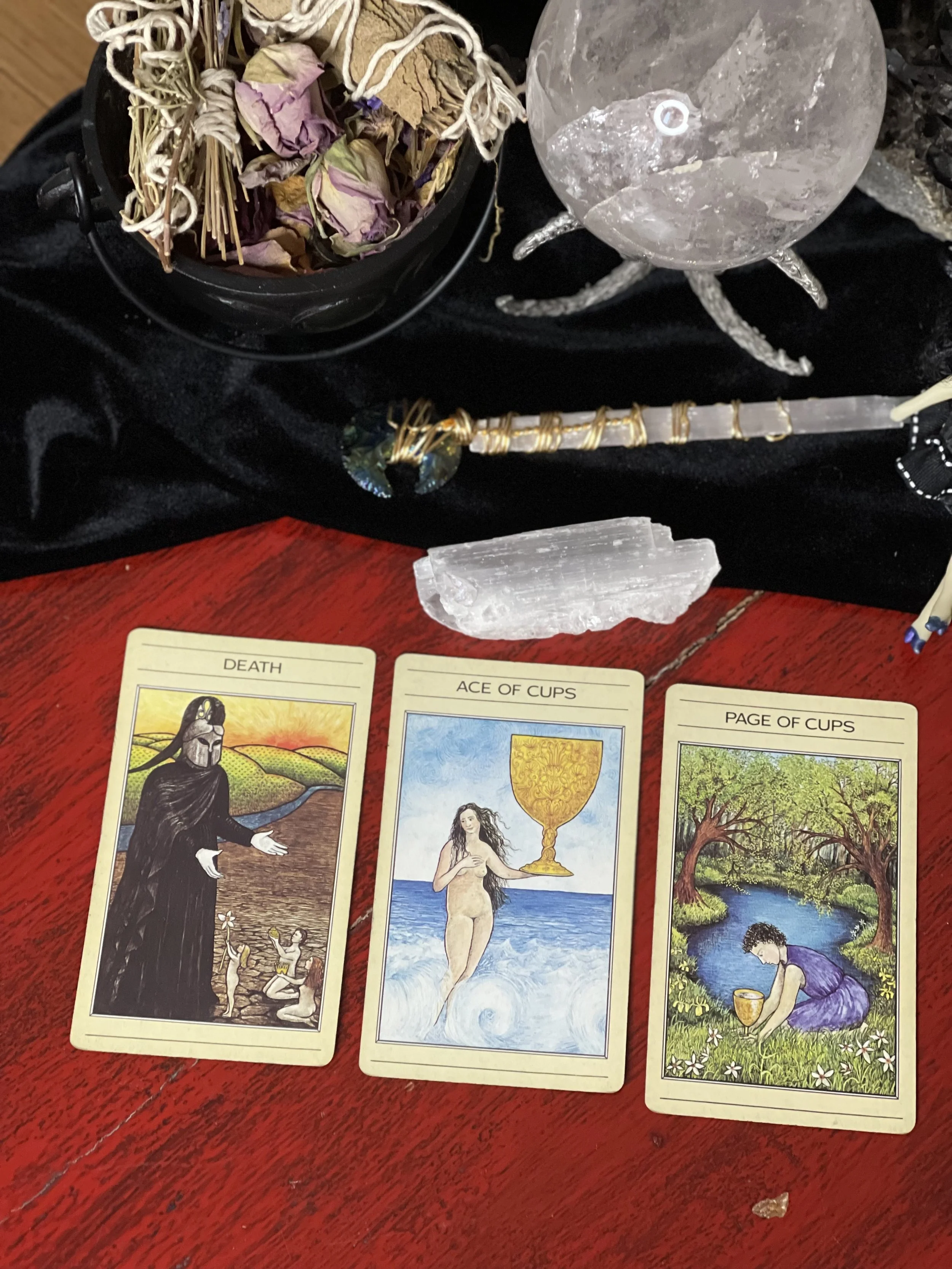 Page of Cups- Self-love. Renewal. Birth - The Page of Cups brings renewal to your spirit this week. You are birthing something new in your life. Whether it’s a new project, job, love, family… it’s something that brings you joy and fulfillment, but you have been expending a lot of your energy on it. You have beautiful potential surrounding you, but make sure your own cup stays full. Don’t give way all your energy. It’s time for some good old-fashioned self-care, self-love, and self-reflection. It’s much easier to create from a place of balance. This is a gentle reminder to recharge your batteries.