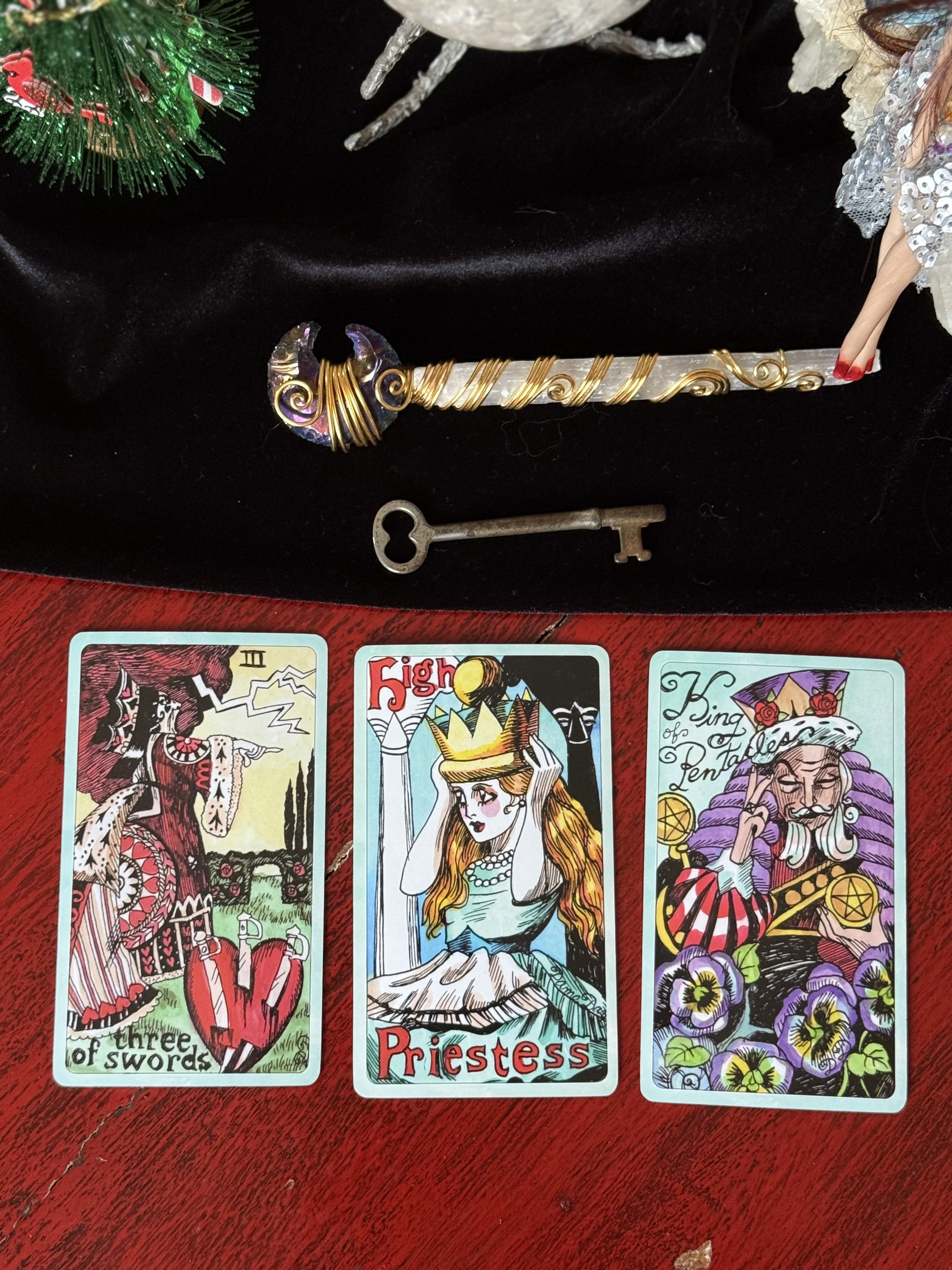 Three of Swords- Grief. Heartache. Loss- The Three of Swords indicates grief and heartache. Whether this loss is old or fresh, it’s present for you emotionally this week. Loss and grief are often heightened during the holiday season. This week offers you the potential to heal a wound, so whether this is an old rift that needs mending or a message for you to continue working through a loss, look for the healing aspect to it. Can you use this as an opportunity to clear out something that is no longer serving you?