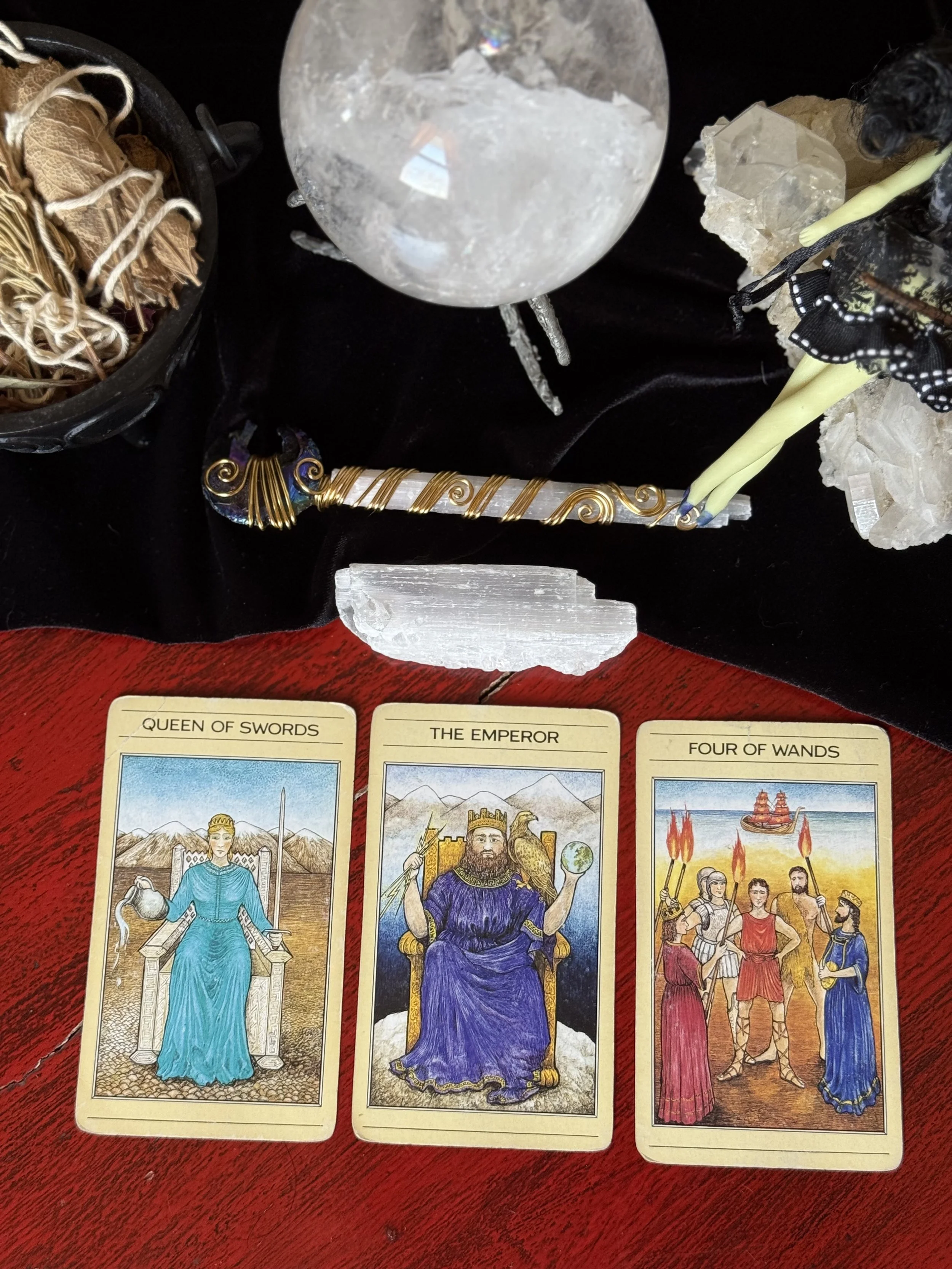 The Emperor- Power. Structure. Success- This Emperor is suggesting that it is time to shift out of old, outdated ways of thinking and patterns of being, and look at where your attachment to structure is holding you back and keeping you blocked. Yes, structure and stability are important but when we cling too tightly to old ways of being, we block ourselves from growing; and that is what is happening for you right now.