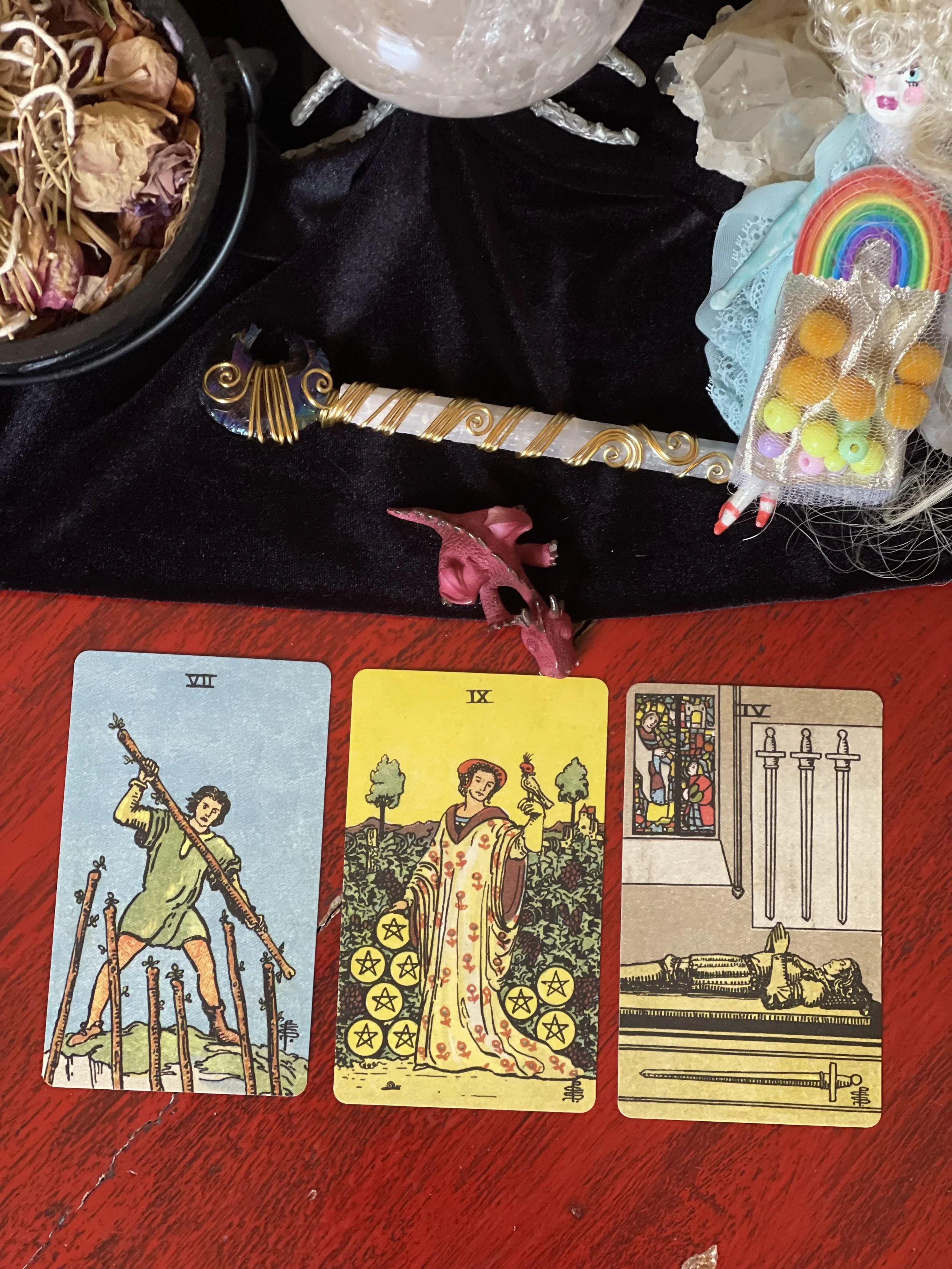 Nine of Pentacles- Success. Achievement. Reward- It’s time to take a moment to honor all of your hard work and count your wins. The Nine of Pentacles indicates that your hard work is all paying off and you are about to reap the rewards. Expect positive energy to head your way this week. You have been putting steady and loving energy into your life and your projects, and The Universe wants you to recognize how well you are doing.