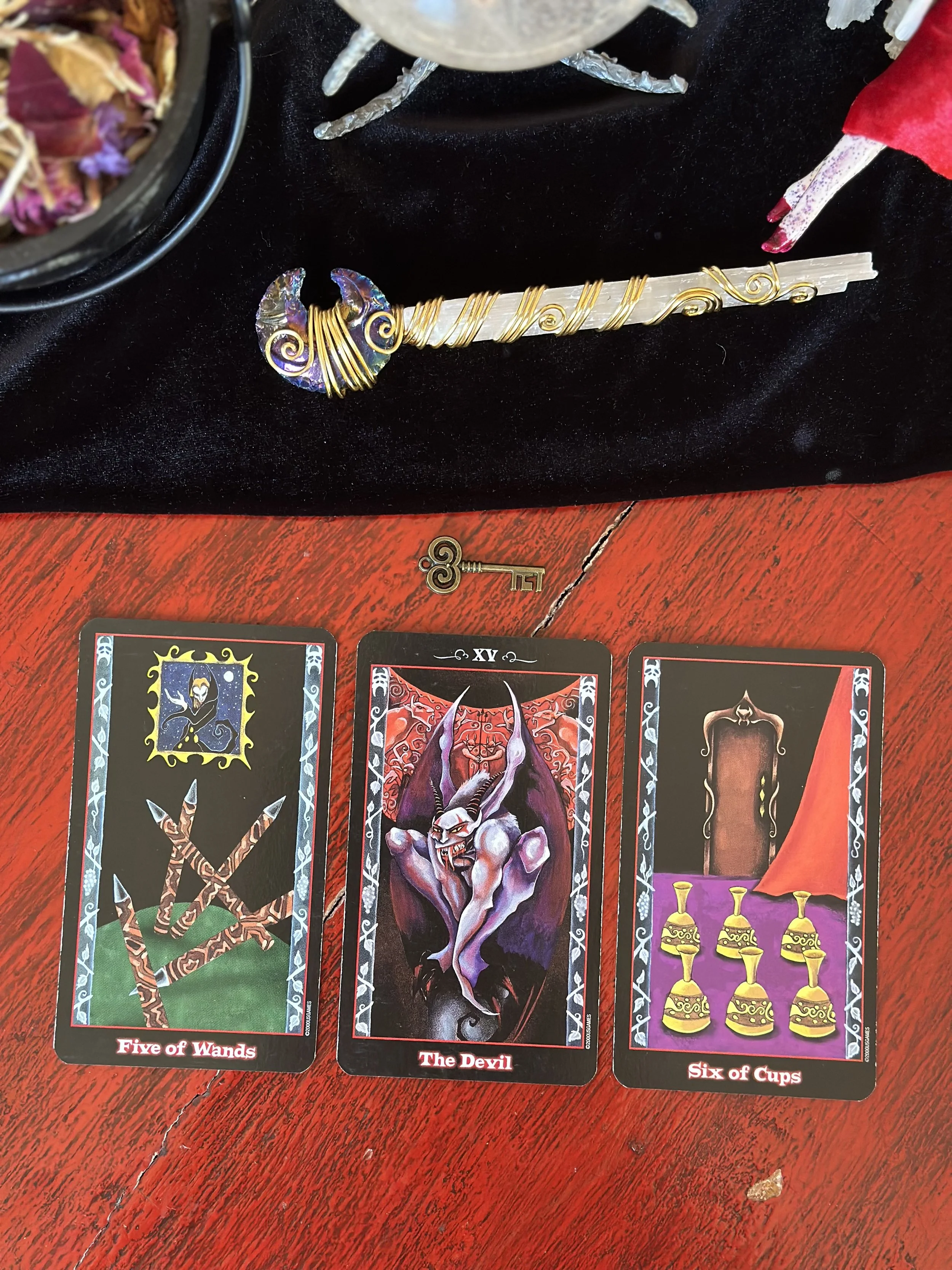 The Devil- Chaos. Bondage. Sabotage- The Devil rolls in to encourage you to break free from the chains that bind you. Whether they be negative mental thoughts, an unsatisfying job, or a relationship that is no longer working. It’s time to take an honest look at your deepest desires and carefully consider what you truly want. The Devil highlights the ways in which we self-sabotage. This week gives you an opportunity to notice where you personally self-sabotage. What chains can you break this week? It's time to free up some energy.