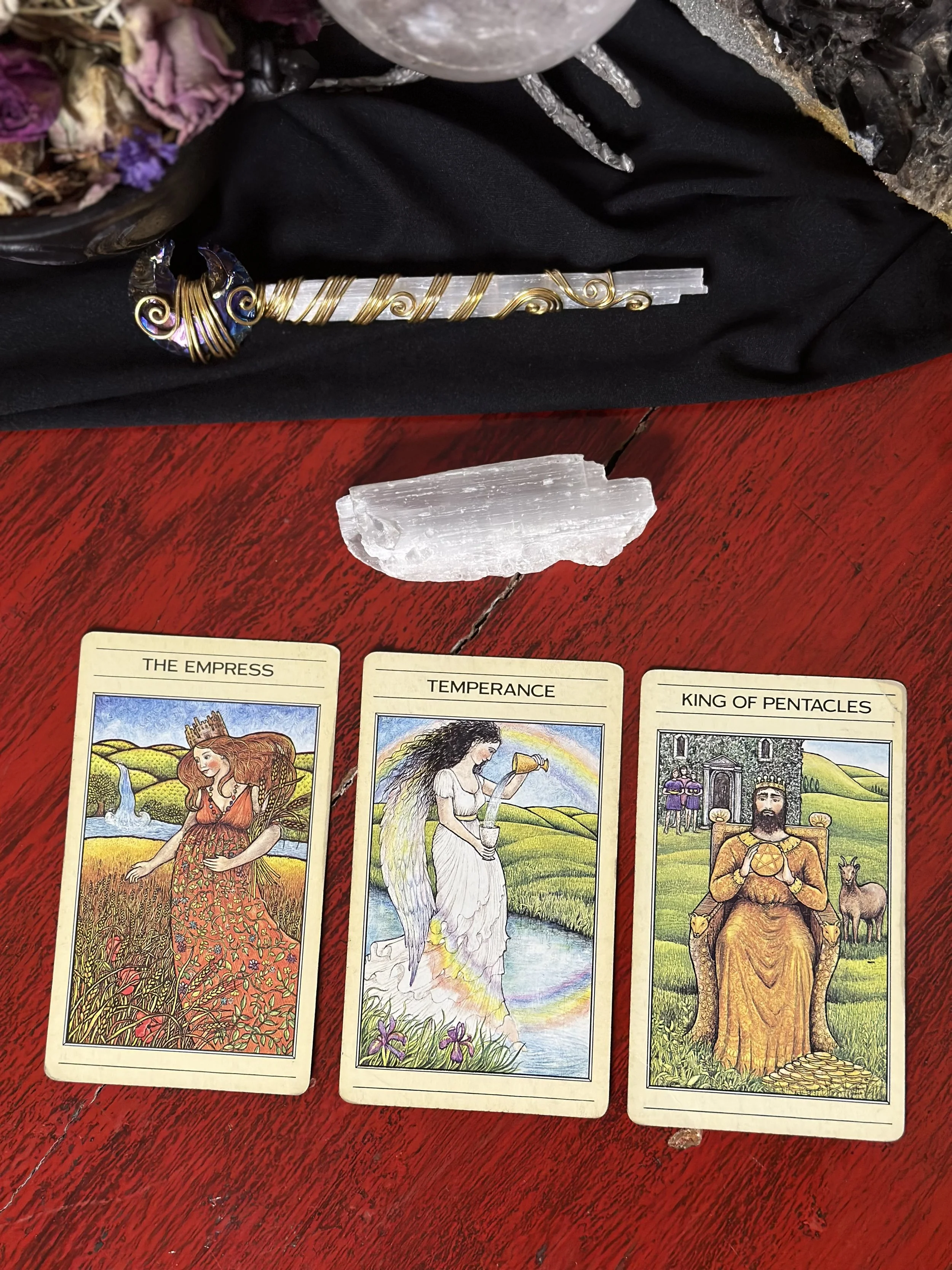 Temperance- Harmony. Balance. Healing- Temperance arrives with the gift of balance and harmony. Temperance indicates deep healing and also peaceful, open, flow of feelings in relationships. Temperance wants things to effortlessly flow together and she is calling for you to find your flow this week. How can you bring things into balance? Move gently, speak kindly, and allow the healing waters of Temperance to soften and heal all those you encounter.